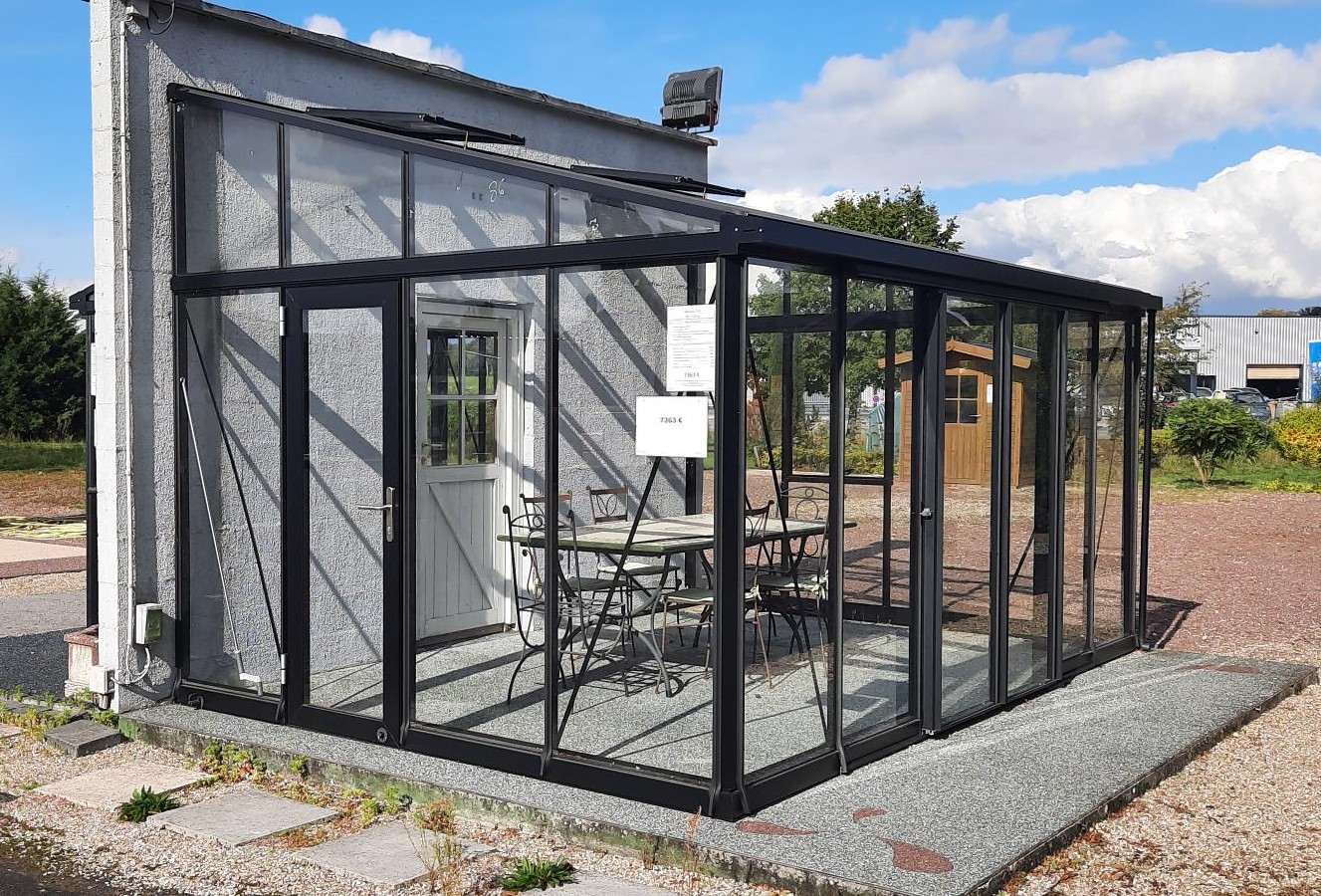 • Aluminium laqué noir RAL 9005 et verre trempé 4 mm.